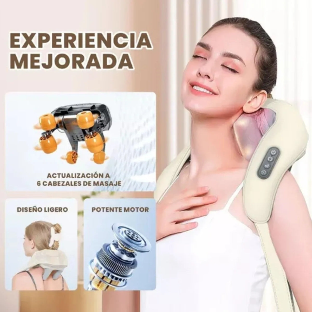 - Diseño ergonómico y cómodo: Se ajusta perfectamente al cuello y hombros.